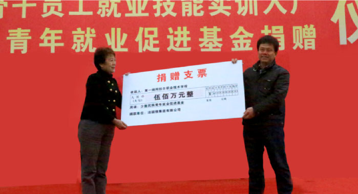 堅持做為社會效力的“領頭羊”在新疆產業基地設立“潔麗雅少數民族青年就業促進基金"500萬元,打造萬人就業工程。